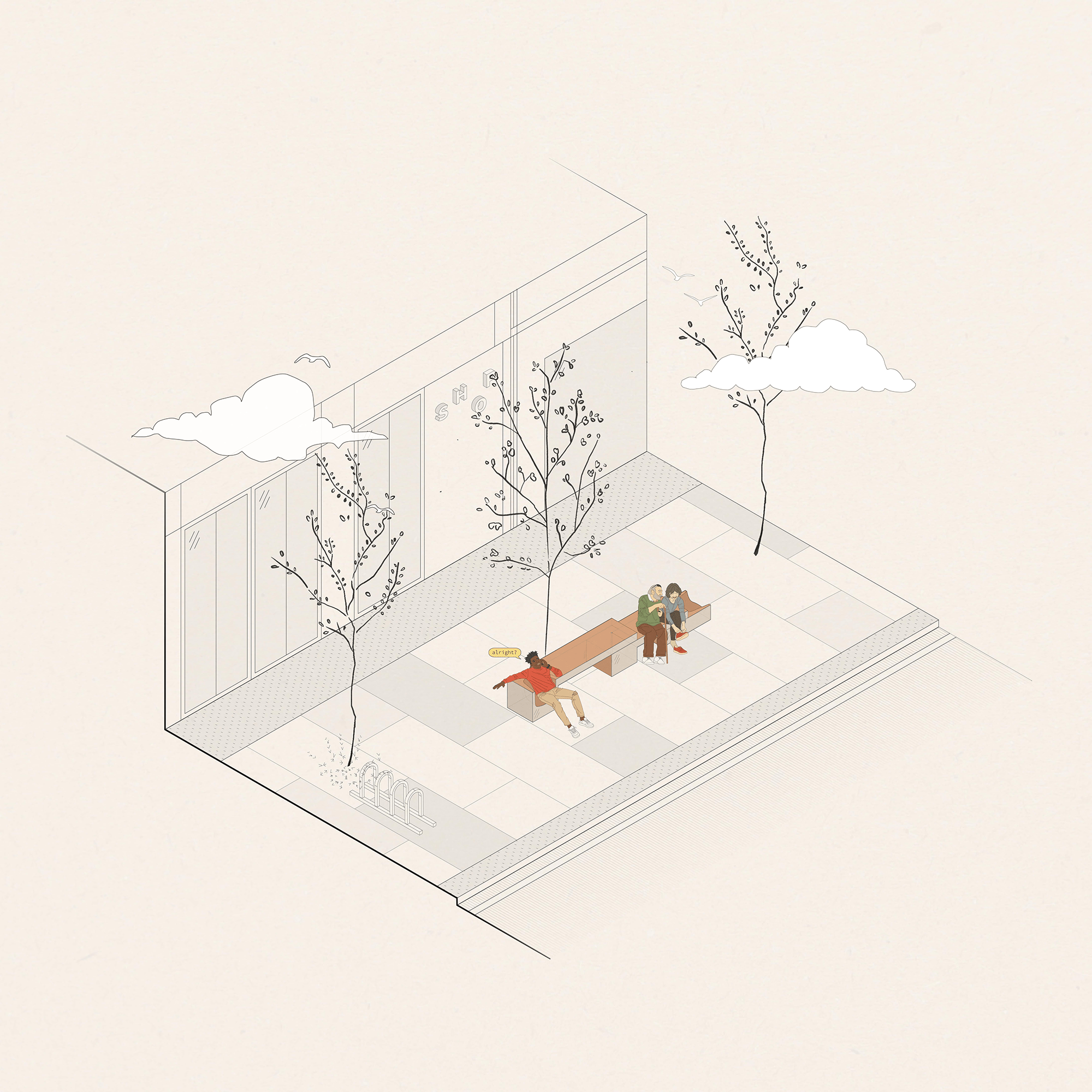 Facilitating vibrancy in a neighborhood means creating site conditions that invite a meandering experience for chance encounters—whether in solitude or among a crowd. Corky Conversations presents a compelling design statement, fostering dialogue wherever it is placed. Adaptable in form, it can anchor itself as a compact 610mm bench on narrow sidewalks or expand up to nearly 4m, drawing in passersby from all directions. To unlock its full potential, Corky Conversations thrives in wider sidewalk settings, where pedestrian flow and urban activity are already in motion. In these spaces, it can situate itself “corkily” in varied configurations, engaging individuals, groups, and the dynamic rhythms of the city.