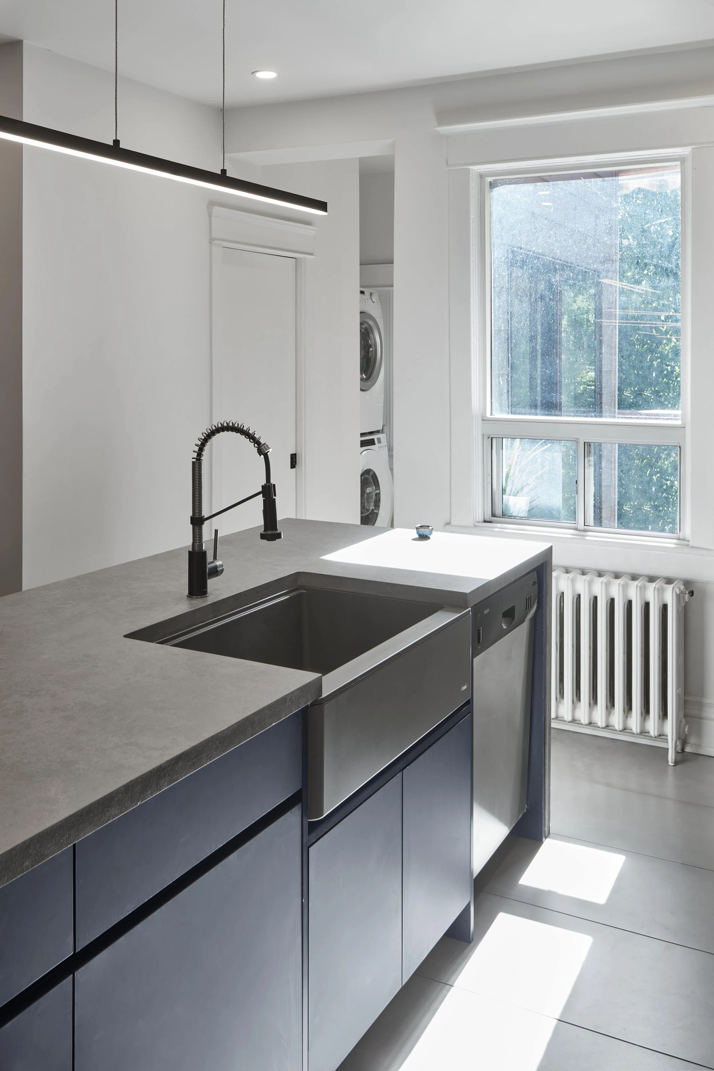 Nestled within the winding streets of the Sunnyside neighborhood, just east of High Park, this renovation reimagines the first floor of a single-family home as a connected and vibrant social hub. Through a collaborative design process, the reconfiguration transforms an introverted, enclosed kitchen and dining area into an open, harmonious space that bridges the new and the old.